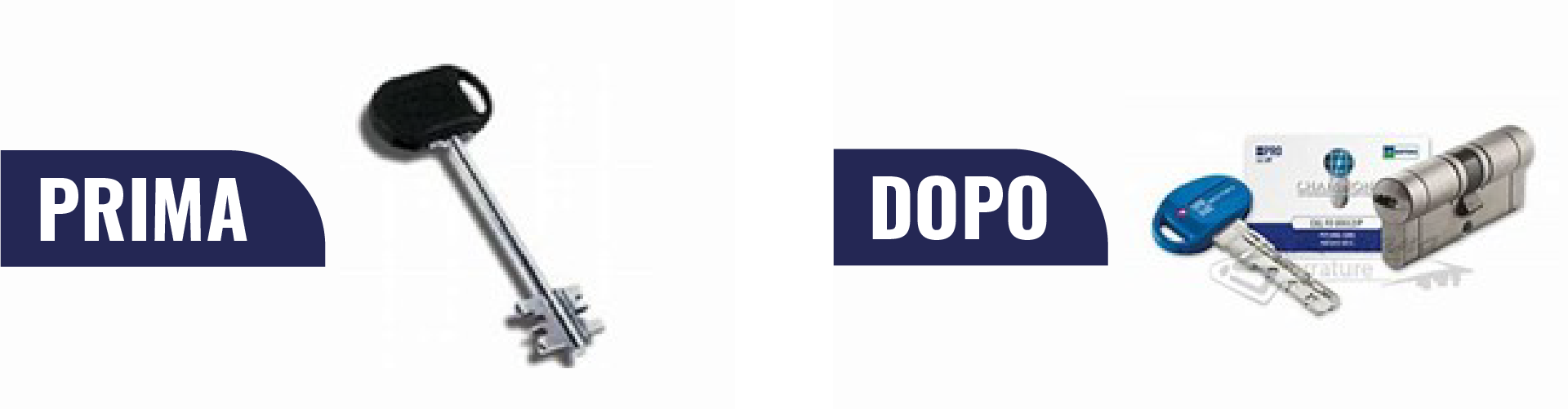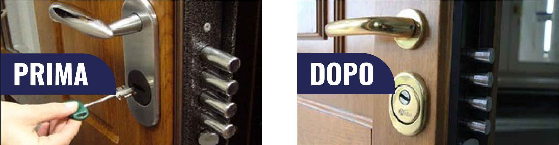 Diamo nuova sicurezza alla vostra porta blindata, passando da una serratura a doppia mappa a serratura con cilindro di sicurezza a Profilo Europeo a duplicazione riservata tramite tesserino e applicazione Defender esterno di protezione in acciaio inox  anti picking, anti bumping o Defender magnetici anti acido.
